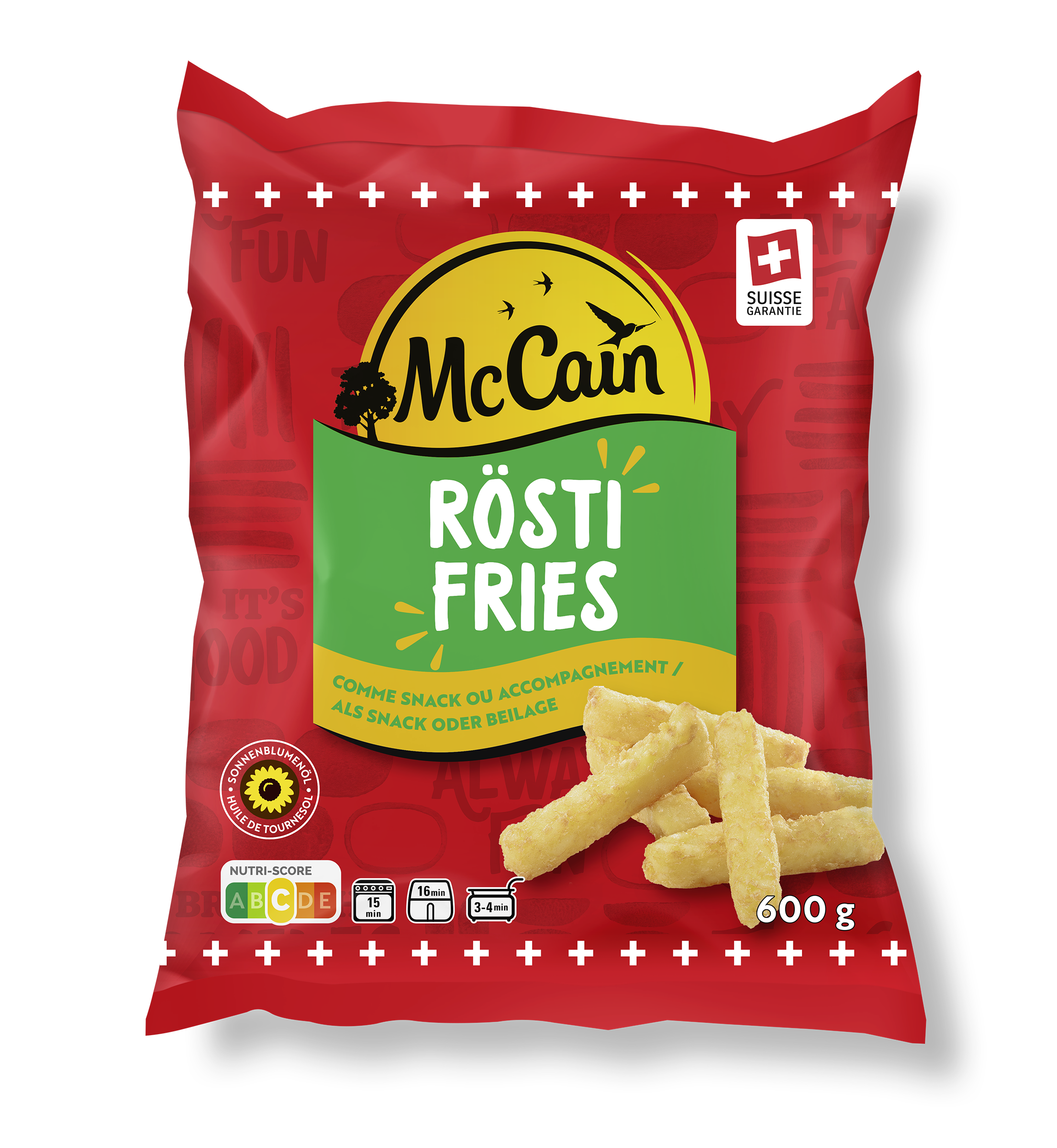 Des délicieuses pommes de terre, transformées en röstis typiques et tout cela dans la forme des frites traditionelles. Croustillantes et divinement savoureuses. Jugez-en par vous-même.
